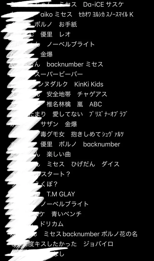 リスナーごとの好きなアーティスト及び曲のメモ書きです。常に見返せるようにしています。